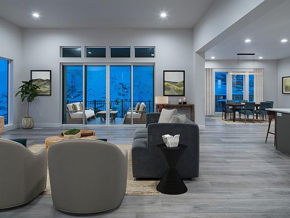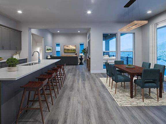 Move-in ready! You must see this highly sought-after Friberg Modern home with a fully finished walkout basement and views of the mountains and valley beyond! The welcoming covered entry flows into the impressive two-story foyer, offering views of the lovely curved stairs, formal dining room, soaring great room, and desirable luxury outdoor living space beyond. The well-designed kitchen overlooks a bright breakfast area and is equipped with a large center island with breakfast bar, plenty of counter and cabinet space, a KitchenAid wall oven/microwave combo, and a gas range cooktop. The majestic first-floor primary bedroom is highlighted by a massive walk-in closet with private laundry. The deluxe primary bath has dual vanities, a large stand-alone soaking tub, a luxe large shower with a seat, and a private water closet. Central to a sizable loft, secondary bedrooms feature walk-in closets two with a shared full hall bath and one with a private full bath. Beautifully situated on a desirable walkout basement homesite. The finished basement includes three additional bedrooms, a bathroom, and a theater room. Additional highlights include a versatile flex space off the foyer, a convenient powder room, and a mud room, with a second laundry room on the second story. Disclaimer: Photos are images only and should not be relied upon to confirm applicable features.