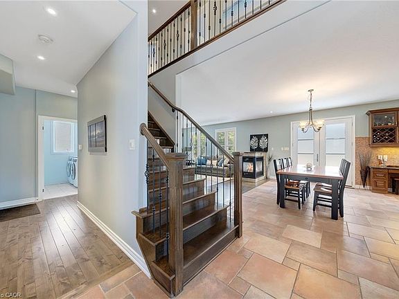 Steps to the Lake! This absolutely gorgeous Stoney Creek home, located in the desirable Fifty Point community, offers an incredible blend of style, space, and convenience. Featuring 4+1 bedrooms and a fully finished lower level, this home is perfect for families and entertainers alike. The main level boasts soaring ceilings, with a bright open-concept layout that flows seamlessly throughout. The gourmet kitchen and spacious living areas make it ideal for gatherings both big and small. The beautiful wood staircase with metal spindles leads you to the equally impressive second level. Upstairs, you'll find generously sized bedrooms and bathrooms, while the updated lower level provides additional living space that is complete with a sleek wet bar, perfect for movie nights or hosting friends. Set on a deep 133 ft lot, this property provides plenty of room to relax and enjoy the outdoors. The sprinkler system makes it easy for up keep. Steps to Lake Ontario, close to Fifty Point Conservation, parks, schools, shopping, and quick highway access-this home truly checks all the boxes. *Note there is a separate entrance/walkup to the garage from the basement.