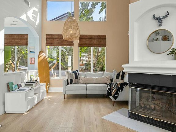 A Beach-inspired home in midtown Ventura filled with style! This 1600 sq ft, 3 bedroom 2.5 bath home has all the stylish updates and details you've been dreaming about - a functional open floor plan, vaulted ceilings, large windows, and a new custom kitchen.The first floor is an open-concept living space with the family room, dining room, and kitchen flowing together. The kitchen is light and airy and has all the design details you look for on Pinterest--quartz countertops, a sea-green backsplash, new fixtures and appliances, and a wine bar with custom cabinetry. New wide-plank luxury Vinyl flooring is also throughout the first floor and stairway up. The second floor has all three bedrooms, a full bath, a library nook, and a laundry room. The Primary bedroom has an ensuite bath and walk-in closet.This is a home with all of the details you look for, including central heating and air, a dialed-in 2-car garage with built-in storage, and lush yet low-maintenance yards. All within a prime Ventura location--walking distance to parks, bike paths, and a short drive to local beaches.