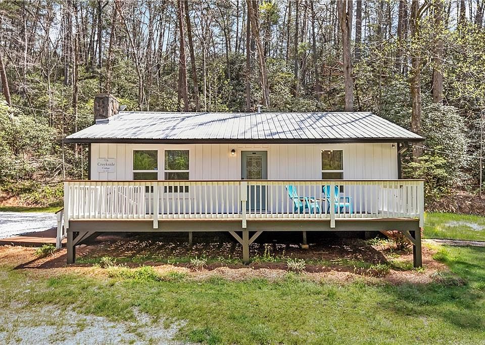 This enchanting 2-bedroom, 1-bathroom fully furnished Creek Side Cottage is a mix of rustic, modern, and farmhouse and has been completely renovated in 2022, blending modern comforts with classic charm. Nestled on a picturesque 1-acre lot, in between downtown Helen, Ga and Unicoi Sate Park this property offers serene countryside living with the convenience of contemporary amenities. The living space boasts stylish finishes and abundant natural light, creating a warm and inviting atmosphere. The modern kitchen features top-of-the-line appliances. Both bedrooms are beautifully appointed, providing cozy retreats for relaxation. The updated bathroom showcases elegant fixtures and a spa-like feel. Step outside to discover your private oasis. The expansive yard is a nature lover's paradise! In addition to the amazing spaces inside you will find a large deck and path to a 6-person hot tub in a purpose-built gazebo. Additionally, the property offers a picturesque mountain stream that can be heard from anywhere on the property. This home is currently zoned STR with White county and can be sold Fully Furnished for those buyers looking for a turn-key, stable & proven investment property!