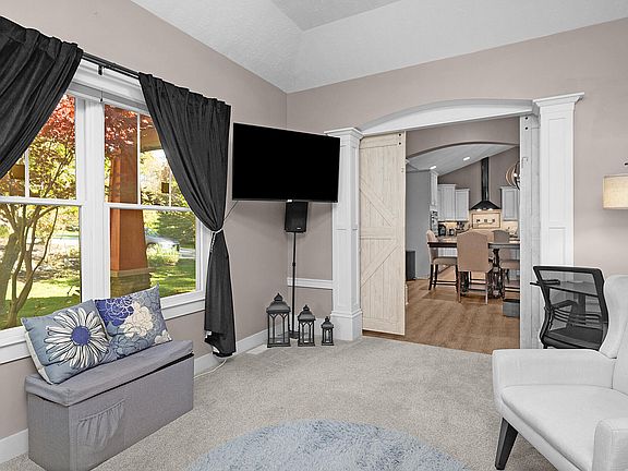 Don't miss this stunning Ranch walkout home featuring 4 high-ceiling bedrooms and 3 luxury baths, perfectly nestled in a serene wooded area with a private drive and peaceful cul-de-sac setting. Enjoy an open floor plan ideal for entertaining, complete with a chef's kitchen boasting granite countertops, pot filler, double sinks with prep sink, large double-door pantry, and new dual oven/microwave (2024). Bright, adjustable lighting throughout enhances every space. Relax in the living room with a natural gas fireplace or retreat to the private master suite with access to the screened deck. Outdoor living shines with a covered porch, back patio, in-ground pool, tranquil Koi pond, and new sprinkler setup (2023). The 2.5-car garage includes a workshop plus a unique additional garage belowconverted to a heated pool house/bonus. Recent upgrades include a NEW ROOF (2025), FURNACE (2025), whole-home water softener (2025), water filter, AC blower fan and electrical system (2025), and septic system (2022). Hot tub electrical outlet added in 2022. Located just 2 minutes from LMCU Ball Fields and GameTime Fun Center, and 5 minutes from Scott's Lake Golf Course, shopping, restaurants, pet services, home improvement stores, schools, daycare, and medical services. Perfect for those seeking privacy, elegance, and convenience in a quiet, friendly neighborhood.