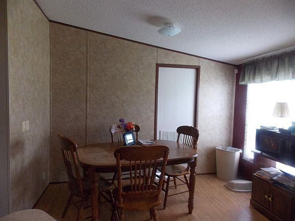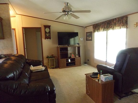 Cozy enough for one yet spacious enough for the family is this total electric 3 bedroom, 2 bath manufacture home on 3.3 acre tract just off outskirts of town. Open concept living room and fully equipped eat in kitchen w/breakfast bar. Master bedroom w/full bath. Laundry room complete w/washer & dryer. Covered front porch. Blacktop drives leads to 40X32 3+ car detached garage w/electricity and concrete floors. Immediate Possession. Selling AS IS.