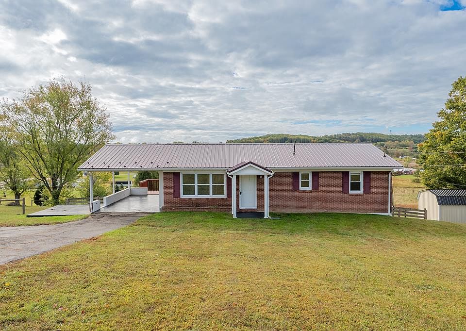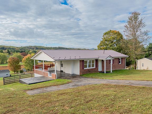 Take a look at this Charming Brick Ranch with Modern Updates and Mountain Views! Welcome home to this well-maintained one-level brick ranch situated on nearly a half-acre lot! This property offers comfort, charm, and convenience all in one package. Enjoy the paved driveway, attached carport, and a fenced backyard—perfect for pets or outdoor living. Take in the beautiful views from the back porch, ideal for the fall leaves or summer greenery. Inside, you'll find a large open living room featuring a classic brick fireplace ready for gas logs. The home has been thoughtfully updated, including a recent renovation that opened up the floor plan by removing a bedroom to create an expansive kitchen and dining area. The primary suite features its own private bath, and the entire home has been freshly painted with gleaming refinished hardwood floors throughout. A full basement provides plenty of storage or potential for future finished space. Additional updates include a durable metal roof and new vinyl windows on the front of the home for efficiency and curb appeal. Conveniently located within walking distance of the local elementary school and just minutes from the New River Trail and area horse trails, this home combines small-town living with outdoor adventure. Move-in ready and priced to sell—don't miss this one!