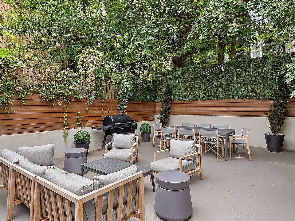 Welcome to 578 Sterling, Residence 2, where Prospect Park meets Crown Heights. Residence 2 a beautifully maintained home spanning the entire floor with 9-foot ceilings, sun-filled living spaces, and a spacious 657sqft private backyard oasis. The chef’s kitchen features custom cabinetry, Quartz waterfall counters, a glass-and-marble mosaic backsplash, and a full Bertazzoni appliance suite.