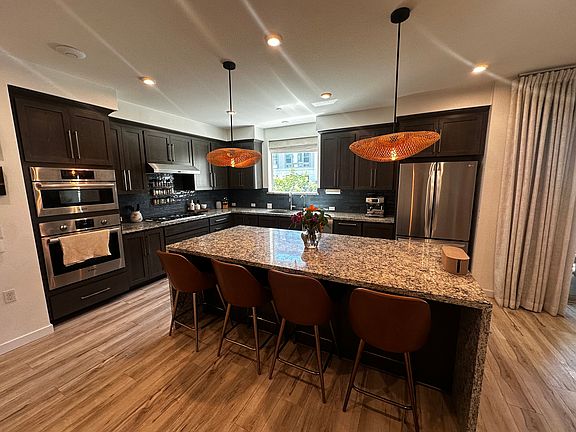 - Chef's kitchen with stainless steel appliances, gas stove and oven
