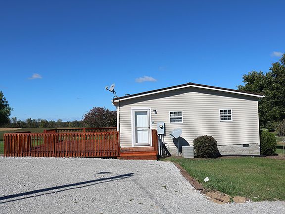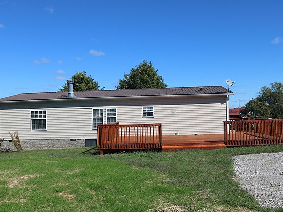 Spacious 3 bedroom, 2 bath manufactured home built in 2009, offering 1,568 sq. ft. of comfortable living space on a 1.457 acre surveyed lot in the quiet rural community of Moorefield, KY. Features include a welcoming covered front porch, metal roof, cozy fireplace, and a back deck overlooking the countryside. Property also includes an outbuilding for extra storage or workshop use. Enjoy peaceful country living just a short drive from town conveniences.