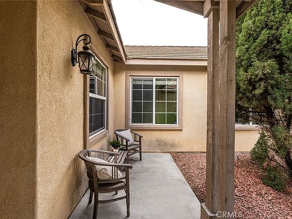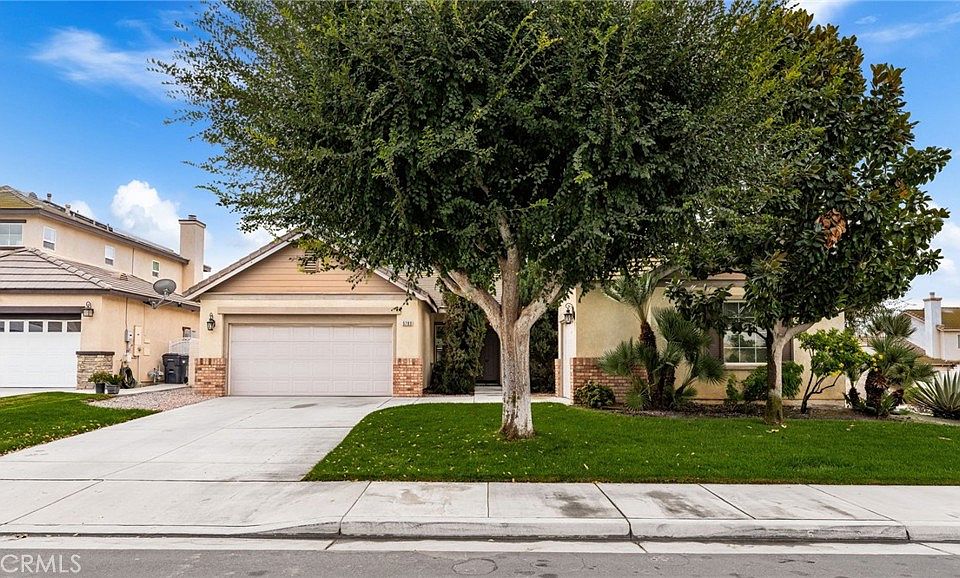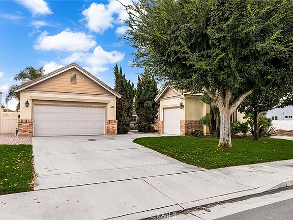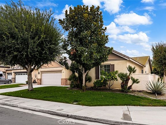 True pride of ownership 3-bedroom, 2-bath single level home with a dedicated office and an inviting front porch, built in 2004 and located on a large corner lot. Home boasts an inviting open floor plan, perfect for entertaining. The bright kitchen features an island, an eat-in dining area and a number of cabinets for ample storage and seamlessly flows into the family room, featuring a fireplace and a slider that opens to a cozy patio and private backyard. The spacious living room is enhanced by stylish cutouts that provide a view into the family room, creating a bright and connected atmosphere. The Formal Dining Room is located just off the living room with a window that looks out to the front patio. The Office is conveniently located just off entry and allows for quiet productivity away from the main living space with the potential to be converted into a fourth bedroom. Retreat to the luxurious master bedroom suite, complete with a spa-inspired bathroom featuring a walk-in shower, a relaxing soaker bathtub, dual vanity sinks, a private toilet room and a generously sized walk-in closet. The hallway bathroom also includes dual vanity sinks with bathtub shower combination. There are two other nice size bedrooms down the hall from the master bedroom, one with a window looking out to the front yard. Features include beautiful hardwood floors throughout most of the home, recessed lighting, ceiling fans, dual pane windows and a separate laundry room (included are newer front-loader washer and dryer). The private backyard is designed for ease, with an outdoor patio that is ready for entertaining and requires minimal upkeep. The property includes a two-car garage at the front and an additional one-car garage at the side providing ample parking and storage. Convenient location, in close proximity to shopping, restaurants and freeways(15, 60 & 91)