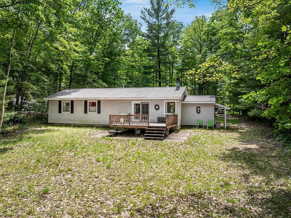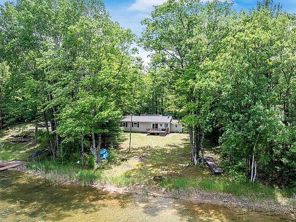 Welcome to your Northern Michigan escape on the crystal-clear shores of all-sports Rennie Lake. Situated on just under ¾ of an acre with 100 feet of private, sandy frontage, this 3-bedroom, 1.5-bath home offers beautiful natural views and direct access to boating, swimming, and year-round lake fun. Inside, the home offers three spacious bedrooms, two with peaceful lake views. The living room features a gas fireplace and a sliding door that opens to a large elevated deck—perfect for enjoying the stunning lake scenery. The home has been well maintained over the years and offers a solid foundation for updates or renovations if desired. A detached two-car garage provides ample storage for toys and gear. Beyond the lake, this property is ideally positioned for outdoor adventure—just minutes from the Vasa Trailhead, seconds from the Boardman River and Brown Bridge Quiet Area for paddling and hiking, and a short drive to the paved TART Trail. Downtown Traverse City is only 20 minutes away, blending peaceful lake life with easy access to shops, dining, and entertainment.