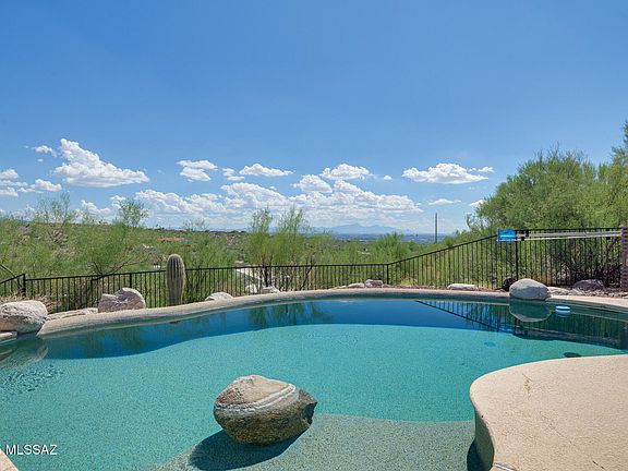 Experience true Foothills living on nearly two acres with sweeping Catalina Mountain vistas by day and twinkling city lights by night. This custom hillside retreat blends elegance with comfort--featuring a gourmet kitchen with hickory cabinetry, double ovens, and French doors that open to multiple balconies designed for sunsets, dining, and entertaining. The spacious primary suite offers a private terrace, sitting room/office, and spa-inspired bath. A versatile bonus room provides space for a studio, gym, or guest retreat. Outside, mature saguaros frame the desert landscape, and the pool invites year-round relaxation--all perfectly positioned to capture the best of Tucson's mountain and city views within the top-rated Catalina Foothills School District.