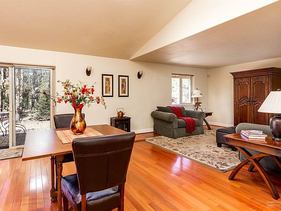 This quaint single level custom Schumacher home is tucked among the trees on a quiet cul-de-sac on the north end of Sunriver. The kitchen is customized with beautiful cabinetry, porcelain tile counters, cherrywood built-ins, Dacor and KitchAid appliances. Brazilian Rosewood floors in the great room with skylights and windows that overlook the back of the house and a generous common area. A free standing gas stove is perfect for cozy evenings. The master bedroom offers private access to the outdoor hot tub and walk in closet. The guest bedroom is on the other side of the house, a perfect set up. Oversize 2 car garage with built in shelves. New deck 2017 to enjoy the large common to the back. New Exterior Paint 2018. SHARC paid. Low maintenance landscaping and easy access to the north end Cottonwood entrance and amenities.