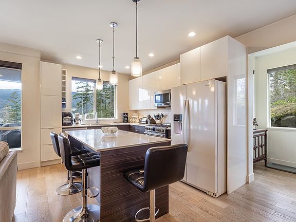 Fabulous ocean view corner unit in a quiet, private location, yet just minutes from shopping, restaurants, the golf course and more! This 3 bed/ 2 bath stylish single-level home offers 1,445 sq.ft. of bright, open living space with floor to ceiling windows & a gourmet kitchen w/ quartz countertops and newer appliances. You'll love the spacious patio, perfect for morning coffee or relaxing afternoons. The luxurious primary bedroom features a large walk-in closet and elegant ensuite w/ heated floors. Thoughtful details include a cozy N/gas fireplace, engineered HW floors, HW on demand, custom built-in closet systems, ample storage throughout, 2 parking stalls & a separate storage locker. A wonderful opportunity to enjoy comfortable, low-maintenance coastal living in a welcoming community.