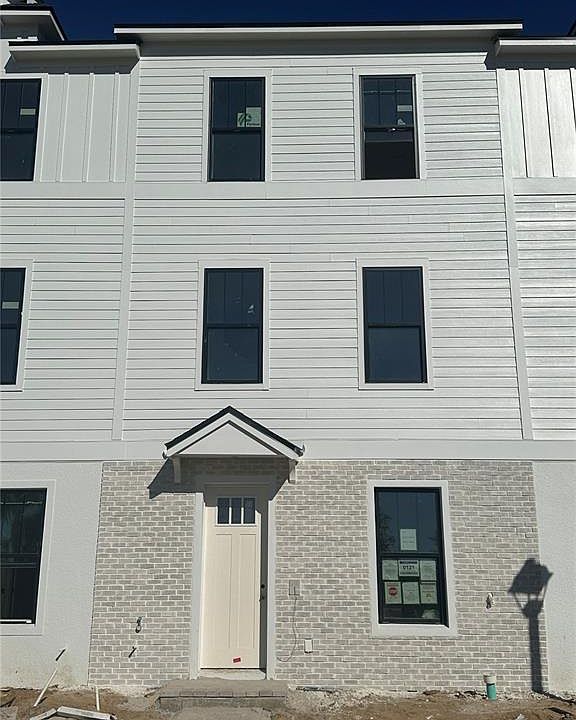 Under Construction. Ready December! This new construction, three-story townhome (The Lantana) is a showstopper with its popular farmhouse exterior. This townhome features 3 bedrooms, 2 full bathrooms, a powder room, spanning 1,846 sq. ft. As you enter this home through the 8' entry-door, you are welcomed with an open spacious foyer with immediate access to your open flex room. As you continue up, you will find luxury vinyl plank flooring that that leads you to the open concept living room, dining room and stunning kitchen. Your inner gourmet will be delighted by the large eat-in island, 42" cabinets with crown molding, quartz counters and soft-close drawers. Your eyes will be drawn to the bank of windows flooding your dining room and kitchen with light. Moving to the third level, you have quick access to the generously sized primary suite that accesses your ensuite bathroom with glass-enclosed shower, dual vanities, and the roomy, well-lit walk-in closet. Adjacent to the primary suite is your laundry room with adjacent, secondary bedrooms and guest bath.