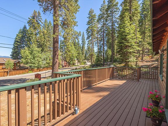 Welcome to the perfect Old Tahoe style storybook cabin. The exterior of this delightfulhome exudes a warm, inviting atmosphere, while the interior showcases a super cute design that is sure to captivate. The property features two expansive Trex decks, perfect for outdoor entertaining or simply enjoying the great outdoors. With beautiful hardwood flooring throughout and an extra-large .33-acre lot, this cabin provides both comfort and space. Its highly desirable location, just across the street from Lake Tahoe, enhances the appeal, making this cabin a true gem in the heart of nature. An absolutely wonderful rental property - easy access year-round, close to the Lake, lots of parking. Placer County currently has no short term rental waitlist to get a permit. Buy now and generate rental income for the holidays and over the winter - basically equadistant to Northstar, Palisades and Homewood.
