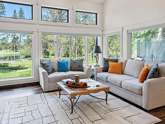 Only 26 families are lucky enough to call The Alberellos in Sunriver home. This Luxury Mountain Chic Townhome sits directly on the massive Woodlands Golf Course Pond, along with unobstructed views of the 10th and 18th fairways. This home was remodeled to the highest standards by the renowned builder, Sun Forest Homes. Home boasts luxurious accessories, loft built in office space, high end finishes, 100 bottle wine cooler, views from nearly every window, floor to ceiling windows, grand fireplace, soaring ceilings, open floor plan, multiple suites, private deck and a hard to find two car garage. The Alberellos are a private and exclusive community that does not allow nightly renters. Enjoy all the Sunriver amenities, abundance of nature along with a private accessible tennis/pickleball court. Home sold partially furnished.