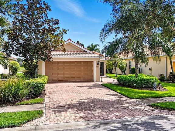 Experience the best of carefree living in this beautifully maintained Pulte Gray Mist model, offering 3 bedrooms and 2 baths on a premium lot in Del Webb Naples. Set along the 8th fairway, the home captures wide water and golf views with a southeastern exposure — the perfect backdrop for mornings on your screened lanai. A private screened front porch adds extra charm and functionality. Inside, the kitchen has been thoughtfully updated with stone countertops, new appliances, and accent lighting. Tile flooring runs throughout the main living areas, while fresh interior paint and abundant natural light create an inviting atmosphere. Living here means access to an incredible array of amenities — from the Oasis Club’s fitness center, steam room, and sauna to pickleball, tennis, bocce, billiards, and both resort and lap pools. Golf enthusiasts will love the optional membership at Panther Run Golf Course. Conveniently located just minutes from Ave Maria’s shopping and dining, and less than an hour from Naples’ renowned beaches and culture, this home combines comfort, convenience, and community.