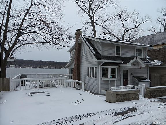 Fantastic Shoreline! ~ Huge Side Deck Overlooks Level Yard and Shore ~ Break wall with steps into water in great condition ~ Updates include roof, windows, electric, tree removal ~ Lower Level guest quarters ~ Three season room for rainy day lake enjoyment not pictured ~ parking for five vehicles ~ Boat hoist, dock, floating sun deck negotiable ~ Call for your private showing.