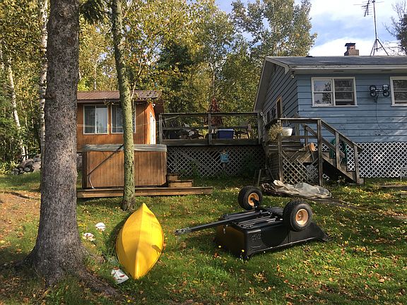 Affordable 2 bedroom cabin, Bunk house, sauna, 100 ft of shoreline, roll in dock and lift dock, septic, sand point well. Nice deck, great location. Includes all furnishings. Priced to sell.