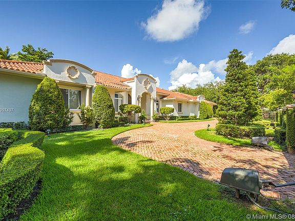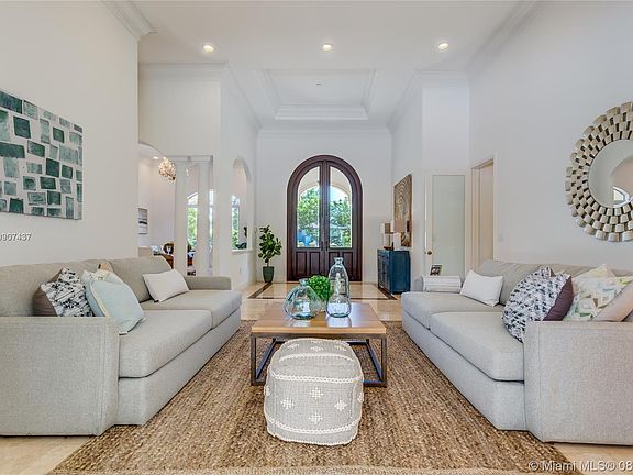 With 10-13' ceilings, light colored travertine floors and prime North Pinecrest location, this single story residence offers style that endures. From the elegant foyer you're met with natural light at every turn taking you through an idyllic floor plan. Whether you enjoy entertaining loved ones or need a functional multi-generational floor plan, this home has it all. Two wings with a master suite at each; formal living, dining and fireplace family room, plus a grand oak paneled entertainment lounge complete with full bar, 700+ bottle wine room and powder room. The pergola covered patio with full counter summer kitchen extends from the entertainment lounge with views of the private manicured landscaping and heated pool and jacuzzi. Pinecrest Elementary district.