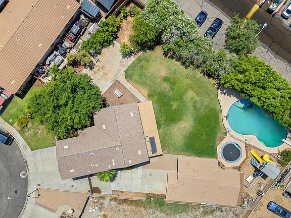 Step into this spacious 5-bedroom, 2.5-bathroom oasis on a HUGE lot that has it all! Dive into your private pool, let the kids enjoy the play area & built-in trampoline, or shoot hoops on the basketball court. The detached 765sf 2-car garage & shop offers plumbing, cooling, storage, and a covered patio—perfect for hobbies or extra space. The RV gate leads to a fully irrigated lush grassy area and an orchard bursting with grapes, citrus, apples, and more! Inside, enjoy updated paint, granite countertops, an extended kitchen bar-top, and epoxy garage floors. Great location near multiple parks, schools and Hwy 60.