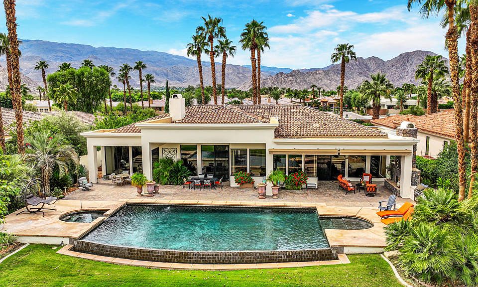 Set against a spectacular lakeside backdrop with breathtaking mountain and golf course views on the 11th hole of the Weiskopf Course, this stunning home feels like a model. Offering approximately 4,828 sq. ft. of pure luxury, it features four bedrooms, including an office, 4.5 baths, and a private two-room casita. Designed for both comfort and style, the open floor plan boasts a spacious gourmet granite island kitchen with Wolf & Sub-Zero appliances, a granite sunken bar showcasing the incredible views, and elegant 24-inch travertine floors. Additional highlights include fresh new paint inside and out, electric shades, and a private gated entry courtyard with tranquil water features.The resort-style backyard is an entertainer's dream, complete with pavers, a saltwater infinity pool and spa, an outdoor fireplace, a fire pit, a built-in BBQ, and more. The home comes fully furnished and includes a golf cart--making it completely move-in ready. With low HOA fees and an unbeatable location, this extraordinary home offers the ultimate lifestyle. Call now to schedule your private showing of this spectacular property!