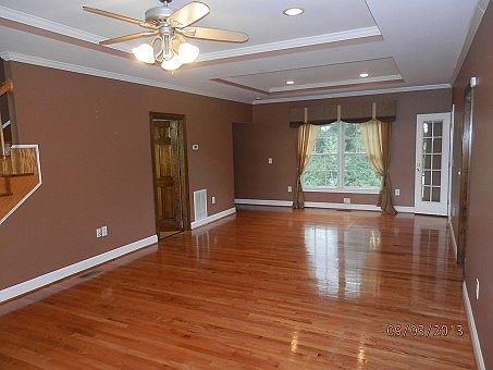 Absolutely gorgeous 3 story house in a great location situated on 3 acres. Home has a front porch as well as screened in porch off the living room on main floor. Large living room with hardwood floors. Enjoy carpet flooring in all bedrooms and tile flooring in bathrooms. Kitchen includes ceramic tiled counter tops, lots of cabinets for storage and stainless steel appliances. Finished basement with a full bath, living area, large bedroom and single car garage. The oversized garage off kitchen has extra space for storage above that is accessible by a pull down attic ladder. Outdood concrete 20x20 pad with walkway off the basement door, makes for a perfect entertainment area.