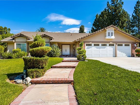 Incredible opportunity to own the ultimate family compound! Tucked away in the hills of Upland on just over a half acre corner lot, this impressive estate features a single level 4 bed 3 bath 2,262 sq ft main house with an additional detached 1 bed plus an office and 1 bath 696 sq ft. guest house. Charming curb appeal welcomes you inside the double door entry to a traditional formal living and dining room with vaulted ceilings anchored by a traditional brick fireplace. Head into the family room to find a cozy space to unwind or entertain as it conveniently opens up to the kitchen area. The bright and delightful kitchen features rich custom cabinetry, quartz style counters, farm style sink, gas range and extends into an eat in dining area with additional pantry storage and desk space. Down the hall you'll find the owner's retreat, which features a spacious bathroom with dual vanities, a soaking tub, separate walk in shower, walk in closet and best of all, a private patio! Three additional generously sized bedrooms and a shared bath complete the main house. Step outside and enjoy the sparkling pool, dine al-fresco under the covered patio OR escape to your very own guest house! Perfect for visitors, additional family members, or private office space, this unique ADU offers one bed, one bath, a bonus room with room for a stackable washer and dryer, a full kitchen and it's own formal living room- WOW! Perfectly situated above the main house, it also has it's own private patio and grass area. Other property features include a 3 car garage with built in cabinetry with epoxy and carpeted flooring, an air compressor, a 20kw generator, storage sheds, security cameras and RV parking. A quiet and private neighborhood with dramatic views of Mt. Baldy and easy access to the 210 freeway make this rare find, the perfect place to call home!