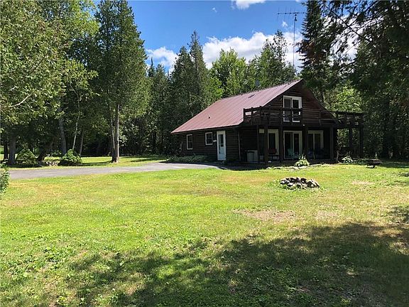 If you are looking for peace and tranquility, look no further. This 3 bedroom 1 bath log home is located on the very last lot on the Cottage Road. A paved driveway leads into the 2.6 acre waterfront lot. 300 Feet of water frontage offers amazing views of Portage Lake. 2 Bedrooms and the Bathroom are situated on the first floor with a spiral staircase leading to a loft and third bedroom. French doors open from loft onto a large second story deck. Lot's of privacy here!