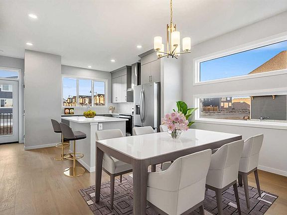 Positioned on a desirable corner lot in Calgary’s northeast community of Homestead, 579 Homestead Drive NE is a beautifully designed two-storey home that blends modern finishes, multi-generational versatility, and thoughtful functionality. From its fully developed 2-bedroom legal secondary suite with separate entrance, to its flexible main floor layout, every detail is crafted for contemporary living and long-term value. The main level showcases 9’ knock-down ceilings and a bright, open-concept design that feels both spacious and inviting. A main floor bedroom and full bathroom add versatility—ideal for guests, extended family, or a home office. The kitchen is a true centerpiece with 42” upper cabinetry topped, stainless steel appliances, and a layout that provides ample space for cooking and entertaining. Subtle design details like coordinated finishes and premium materials elevate the entire main floor’s aesthetic and functionality. Upstairs, a central bonus room offers an ideal gathering place for family time or relaxation. The upper level includes three bedrooms, each thoughtfully proportioned, along with a full laundry room for everyday convenience. The primary bedroom includes a private 4-piece ensuite and a generous closet, while the tile flooring in all upper bathrooms and the laundry room adds durability and modern style. The fully developed 2-bedroom legal secondary suite, complete with a separate rear entrance, provides exceptional flexibility—perfect for multi-generational living or potential rental income. This well-planned lower-level suite includes its own living space, kitchen, bathroom, and bedrooms, designed for comfort and privacy. The backyard has a quaint deck which enhances the home’s entertainment potential, offering the perfect spot for summer barbecues or evening relaxation. The corner lot ensures extra yard space, natural light, and enhanced curb appeal. Located in the new community of Homestead, residents can enjoy a 19-acre environmental wetland with a sheltered gazebo and winding pathways, 4 km of walking trails with connections to the regional pathway system, a 3-acre community association site, a cricket pitch, soccer fields, and future pickleball and basketball courts. Shopping and restaurants are close by, and the Genesis Centre and Prairie Winds Park are only minutes away. Homestead offers activities for everyone—don’t miss your chance to experience all it has to offer. Contact the showhome today!