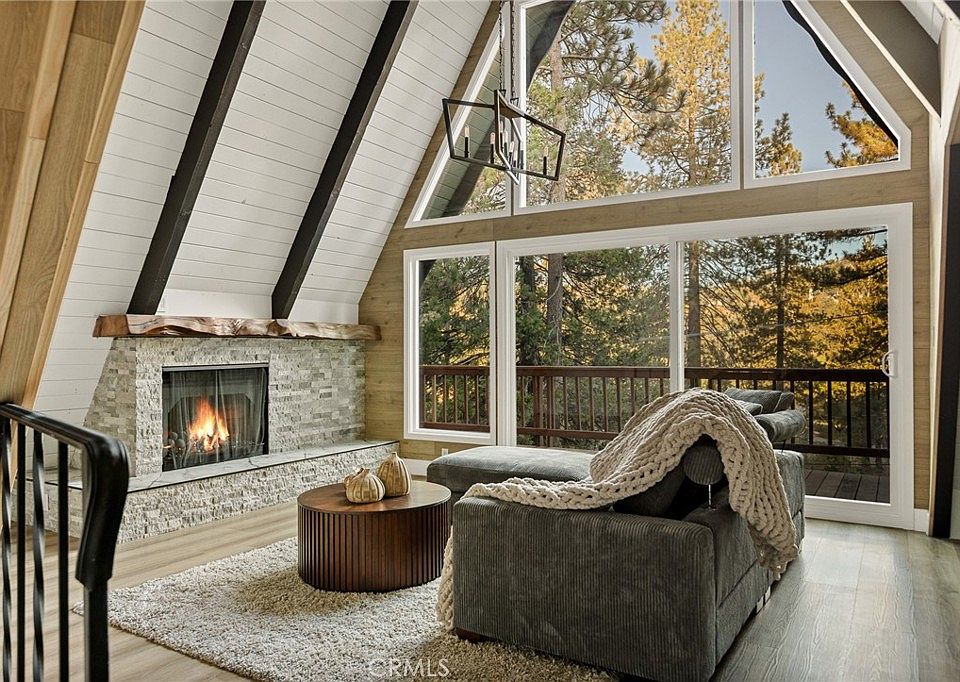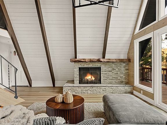 Beautifully renovated A frame Lake Arrowhead home with lake rights! This 3-bedroom, 3-bath home offers 1,758 sq. ft. of stylish mountain living on a spacious 14,812 sq. ft. lot near the Lake Arrowhead Country Club and Grass Valley Park. Enjoy a brand-new kitchen with modern stainless steel appliances, an open-concept living area, with wrap around decks and a bedroom and full bath conveniently located on each of the three levels—perfect for guests or multi-generational living. The home also features brand new double pane windows, new central A/C, new mini-split in loft area, a 1½-car garage, ample parking, and serene forest surroundings. Come see this beauty and start enjoying mountain life at its best!