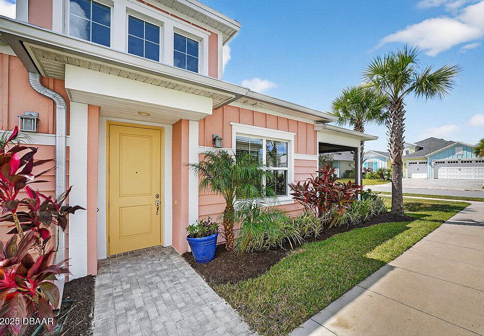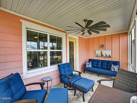 Discover this beautifully appointed cottage in the desirable and active Latitude Daytona Beach 55+ community, offering just under 1,500 square feet of thoughtfully designed living space. Featuring 2 bedrooms, 2 baths, and a versatile den, this home is ideal for relaxing or entertaining. A screened lanai with roller shades provides privacy and sun protection, while all-concrete block construction with foam insulation offers excellent soundproofing and energy efficiency. The stylish kitchen boasts granite countertops, 42'' soft-close cabinets, a GE Café refrigerator, and a double convection oven with air fryer. Additional touches include a shiplap accent wall, premium light fixtures and ceiling fans, soundproof French doors in the den, and upgraded landscaping for lovely curb appeal. Come enjoy resort-style amenities and the laid-back Latitude lifestyle in this move-in-ready home. Latitude's vibrant Town Center is the heartbeat of the community, offering endless opportunities for fun and connection. Dance the night away to live music at the Bandshell every weekend, savor delicious food and cocktails at the Bar & Chill Restaurant, or enjoy poolside drinks and burgers at the Sandbar. Spend sunny afternoons at the resort-style Paradise Pool, swim laps in the sports or indoor pools, or stay fit at the state-of-the-art Fins UP! Fitness Center. Catch a show at the Mango Theater, play with your pup at the Dog Park, and enjoy pickleball, tennis, bocce ball, and so much more. And when you're ready for the beach, take the luxury bus from Town Center to the community's Private Beach Club in Ormond Beach. With a social calendar this full, the only challenge will be figuring out how to fit it all in!