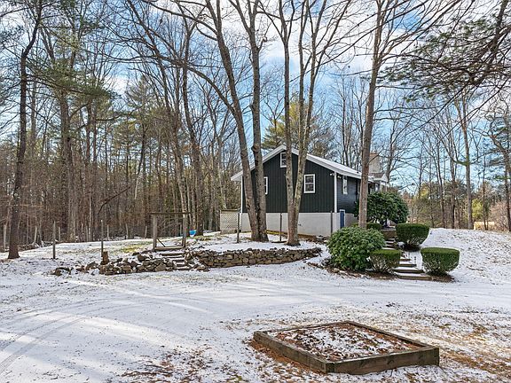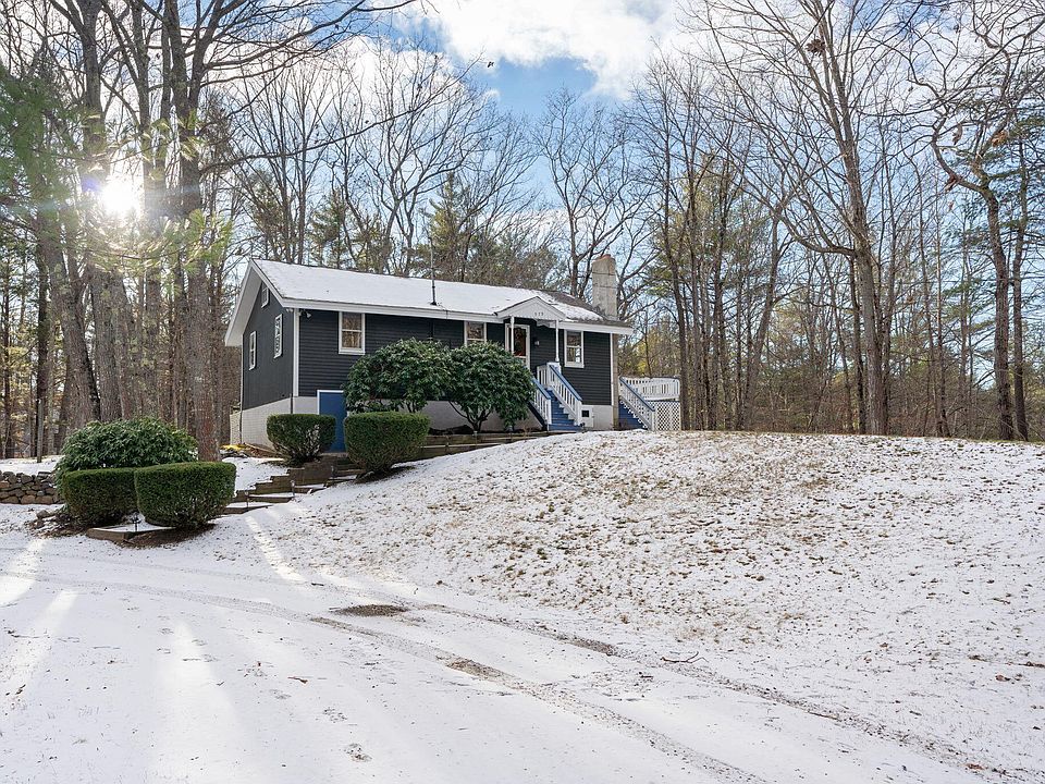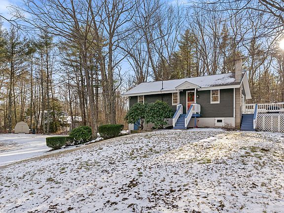 Sweet single floor living in this ranch tucked away on a large private lot...ideal 1st home, retirement (1 floor living!) or even a vacation/rental property since just over 3 miles to the beautiful beaches of Wells or Ogunquit! A cozy woodstove, in the spacious living and kitchen area is not only economical but adds to the comfy feeling of the living space. The soaring wood accented cathedral ceiling and wood floors add to the character of this large living space. Step out onto the huge deck from the kitchen and imagine outdoor fun or relaxing while overlooking the pretty wooded privacy of the .7 acre lot. This home offers 2 good size bedrooms plus a fun, bonus sleeping loft and tiled full bathroom. Forced hot air heating system and even Central Air Conditioning!! Plenty of parking, a shed for storage and lots of potential for expansion at this great spot so close to the Ogunquit town line & a 30 minute drive to Portsmouth Naval Shipyard, 40 minutes to Portland (Jetport!) Roof and exterior painting were completed in 2020. And fenced in backyard is ideal for pets! Move right in and call 579 Hiltons Lane home!