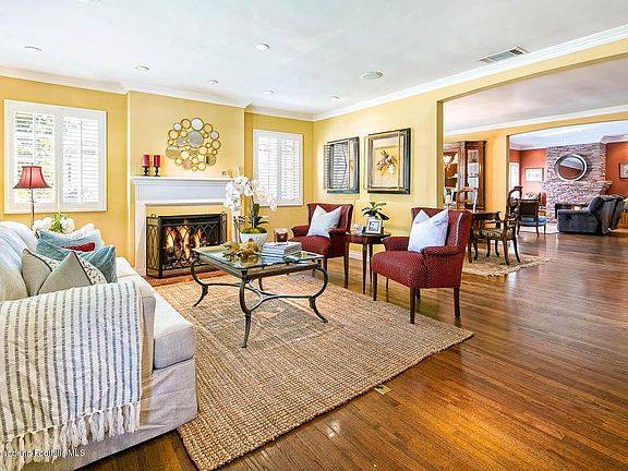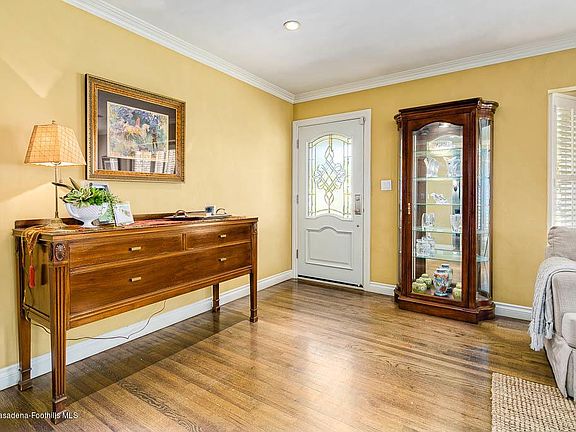 With spectacular views of the San Gabriel Mountains, move-in ready home on a quiet residential street will amaze you with its abundant amenities. There's a classic elegance in each of the home's spacious rooms from its hardwood floors and decorative crown molding to its plantation wooden shutters, and the flagstone gas fireplace as the focal point in this open concept living room. Designed by entertainment lovers, this home features specialty art lighting and surround sound and comes with a dual-temperature subzero wine cooler, four plasma TVs, and a spacious dining room. Built-in's are abundant in this home from its wall-to-wall kitchen cabinets and Cherrywood antique hutch. High end appliances include a Subzero 15 shelves dual zone wine cooler, five-burner gourmet stove, double Jenn Air oven, 3-drawer French door refrigerator, and dual Whirlpool washer & dryer. Relax in comfort in the quiet master suite with its hotel-quality boudoir featuring a double Jacuzzi tub and double-wide, dual fixture shower offset by travertine stone and tile flooring. Outdoors, enjoy the built-in BBQ and outdoor dining as you take in the views of the mountains.The landscaped yard comes with motion sensor lights, auto sprinklers. Welcome to Daisy Villa neighborhood!