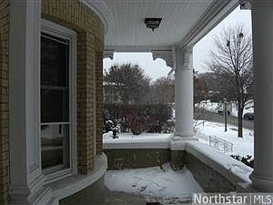 Elegant old world charm. Overlooks Summit Ave. Landmark building with carved cherry stairs. 11' ceilings, 8' windows, bay window overlooks private porch. Detailed molding, fireplace mantel, paneled doors. maple flr, New granite and SS appl, off st parking