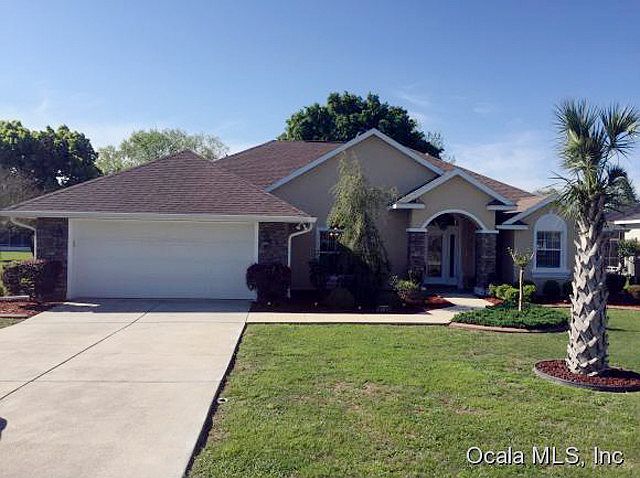 Stunning 3 Bedroom, 2 Bath, 2-Car Garage Conc Blk Stucco Home with stone accent on beautifully landscaped lot including palm trees, shrubbery, and more. Home is nicely appointed including great room with wood floors, soaring vaulted ceiling and triple glass slider to enclosed patio lanai. Gorgeous kitchen with newer Stainless Steel appliances, including LG French door refrigerator, breakfast nook, Owner's suite features crown molding, expansive bedroom, walk-in closet, bath with garden tub and stall shower. Nice-sized spare bedrooms. HVAC replaced in 2012 per Seller. Home is full of high quality finishes including tiled floors, lighting and plumbing fixtures, an more!