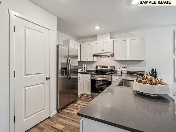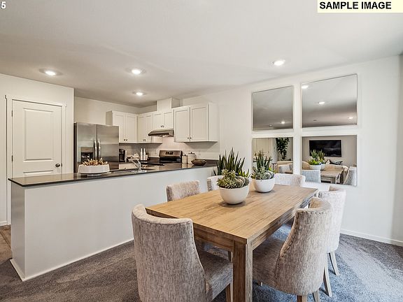 This new construction home is located in Meadowview, a serene community surrounded by protected wetlands and within walking distance to local parks and trails, with easy access to Fern Ridge Lake, grocery stores, schools, and restaurants. The Dylan plan offers a single-story design with an open-concept kitchen, living, and dining area on one side of the home for easy everyday living, while both bedrooms are tucked away on the other side, including a private primary suite in the rear corner with a full bath and walk-in closet. Interior highlights include quartz countertops, shaker-style cabinets, LVP flooring in the kitchen and bathrooms, plus landscaping. This home also includes central air conditioning, a refrigerator, washer and dryer, and blinds—all at no extra cost! Located on homesite 44, this home is expected to be complete in winter 2025. Rendering is artist conception only. Photos are of a similar home, features and finishes will vary.