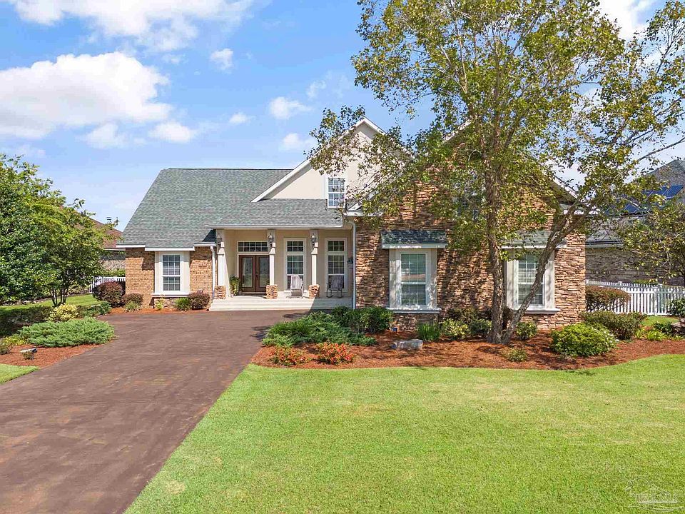 Welcome to your dream home on the picturesque Highland Lake in the exclusive gated community of The Moors, where luxury meets tranquility. This stunning 4-bedroom, 4.5-bathroom residence spans over 4,057 square feet and is perfectly situated on nearly half an acre. The first-floor primary suite is a true sanctuary, featuring a spacious layout with a large soaking tub, tiled shower, double vanities, and an expansive walk-in closet. In addition to the four well-appointed bedrooms, the home offers a versatile game room complete with a pool table (which can convey for the right offer), a bonus media room, and a dedicated office space, each of which could easily serve as additional bedrooms. Enjoy the outdoor lifestyle with fishing and kayaking on the serene 6-acre lake, all within a community that boasts an array of amenities including a pool, tennis courts, a playground, 2 additional lakes, and a picnic area. The home’s inviting front porch and large screened-in porch provide the perfect spots to unwind and soak in the peaceful lake views. Designed for effortless entertaining, the living room, formal dining room, and eat-in kitchen flow seamlessly together, creating an ideal setting for gatherings. The oversized garage accommodates two cars along with a motorcycle or jet ski or extra space for projects or storage. Located just minutes from I-10 right off Avalon Boulevard, you can reach Pensacola or Gulf Breeze in a mere 15 minutes while still enjoying the serenity of this highly sought-after community. Plus, with the added benefit of being outside a flood zone, this property is a true gem. Experience luxury living at its finest—schedule your private tour today! *Sellers will contribute to the buyer's closing costs or rate buy down with an acceptable offer.