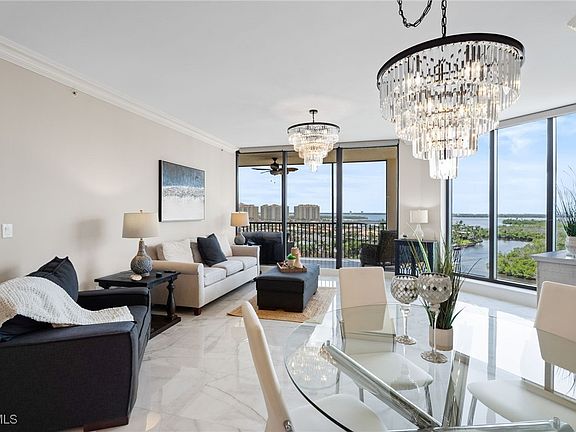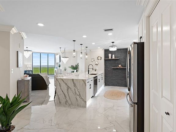 Experience high-rise coastal living at its finest in this completely renovated 3-bedroom, 2-bath condo with a flex space, perched on the 11th floor of the prestigious Cape Harbour community in Cape Coral, FL. Enjoy breathtaking panoramic views of the Caloosahatchee River from your private balcony, with luxury finishes and modern elegance throughout. Step inside to discover freshly painted interiors, elegant crown molding, and large-format porcelain tile flooring that flows seamlessly through every room. The chef’s kitchen is a showstopper, boasting a waterfall-edge quartz countertop, extensive wood cabinetry, and top-of-the-line stainless steel appliances—a perfect blend of style and functionality. The spacious primary suite features custom lighted built-in shelving and serene views. Indulge in the spa-like ensuite bathroom complete with dual quartz vanities, a frameless glass shower, and luxury tilework including two oversized niche shelves. Additional highlights include: