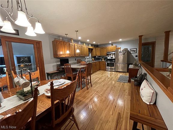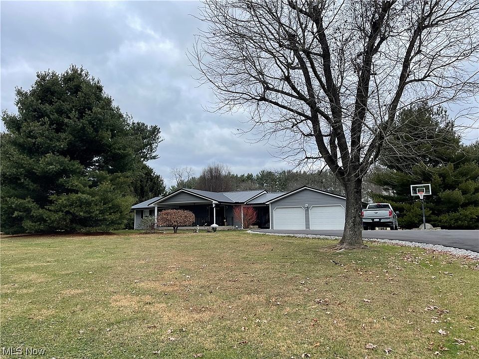 First time on the market! Metal roof, soffit & facia 2022, gutters 2023. Siding, basement windows 2022, new elegant front door & new front porch 2022 with composite deck flooring and ceiling fan, whole house generator standby 2023, new asphalt driveway 2023. Beautiful stamped concrete patio with wrought iron fencing. Stamped concrete breezeway. Hickory floors throughout kitchen, LVR, Dining, hallway and two of the bedrooms. Gas fireplace in LVR, Vinyl in the 3rd bedroom converted to first floor laundry room. Basement laundry hookups remain. Granite countertops in kitchen. Oak cabinets. Breakfast bar. HVAC 2010, newer hot water tank. Two recreation rooms in the basement, workshop, and unfinished basement storage/laundry room. Storage shed, 24 x 32 pole building with concrete floor, 24 x 32 attached garage and plenty of extra parking area. Private, convenient one level living in Warren School district.
