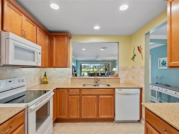 Located in the highly sought-after 55+ Del Webb Naples community, this IMMACULATE and FURNISHED Gray Myst floor plan is a true gem. Sellers are providing the GOLD HOME WARRANTY PACKAGE with the purchase of this home. Offering 3 bedrooms and 2 bathrooms, this beautifully upgraded home is designed to impress. Enjoy spectacular GOLF COURSE and WATER VIEWS from your EXTENDED LANAI, the perfect spot to unwind while taking in breathtaking SUNRISES each morning. The home features elegant 9-foot ceilings, crown molding, and TILE FLOORING throughout.The PLANTATION SHUTTERS throughout add a touch of sophistication while maintaining privacy. The kitchen is equipped with PULL OUT DRAWERS in the pantry and cabinets, sleek granite countertops, a convenient breakfast bar, and a cozy casual dining area—ideal for both entertaining and everyday living. The PRIMARY SUITE is a serene retreat, featuring a large WALK-IN CLOSET and an en-suite bathroom with dual vanities, offering both comfort and convenience. Two additional bedrooms provide ample space for family, guests, or a home office, ensuring flexibility to suit your needs. This home not only offers luxurious living but also a peaceful setting within a vibrant, active community. Golf enthusiasts will be thrilled to know there are AVAILABLE GOLF MEMBERSHIPS at the Panther Run Golf Club, offering an exceptional golfing experience. Experience the Del Webb Active Adult lifestyle with access to a range of amenities, including the Rusty Putter Restaurant, a RESORT-STYLE pool, lap pool, fitness center, PICKLEBALL, bocce and tennis courts, a GOLF SIMULATOR, and billiards. Explore Del Webb Naples and Ave Maria effortlessly in your golf cart, whether you're heading to Publix, church, or out for a delightful dinner. Embrace the lifestyle you deserve in this extraordinary home, where comfort, luxury, and convenience seamlessly come together.