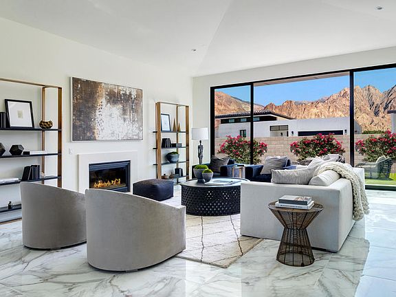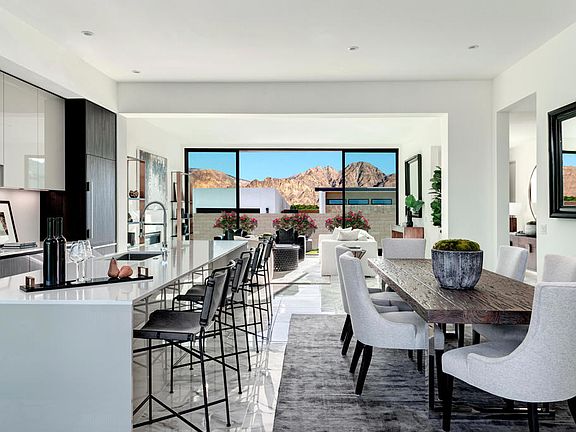 The Balinese. Classic design meets modern touch, and result in this warm inviting residence inspired by Balinese culture, aesthetic, and vibe. Large glass openings from front to back capture the mountain breezes and carry the outdoor experience the length of the property, with the reflecting pool in the back and front mountain views centered around the firepit at the front terrace. Our largest floor plan provides for especially large bedrooms, the Main Bedroom with a sitting area by the poolside slider, and a huge walk-in closet. Another large bedroom could be used as a secondary main suite or a media room. An elegant office with pool views rounds out this captivating home. These 3 Bedroom/ 3.5 Bath plans provide back yard privacy with front mountain view luxury. Beautiful finishes: Monumental Glass sliders, Fisher & Paykel appliances, European cabinetry and fixtures, pools and spas and many other luxe elements contribute to its distinctive and classic La Quinta residence. NOTE: Interior photos are of a prior modeled home, finishes may vary.