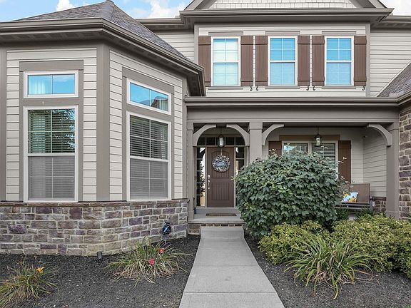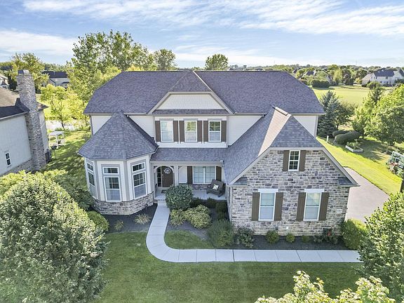 Welcome to this stunning Ballantrae home overlooking the 16th hole at The Golf Club of Dublin in the Hilliard City School District. With 6 bedrooms with walk-in closets, 5.5 bathrooms, and a 3-car garage with soaring 13' ceilings, this residence offers both elegance and function. The main level features 10' ceilings, wood flooring, a spacious bedroom suite, private office, laundry, mud room, and a cozy stone fireplace with gas insert. Upstairs, the primary suite includes a private office, while additional bedrooms offer en-suite and Jack-and-Jill style baths with separate vanities. The finished basement is ideal for entertaining, with a custom bar, recreation room, bedroom (both with egress windows) and the unfinished portion provides additional storage. Outdoor living is unmatched with a patio, pergola with infrared heaters, gas fire feature, and breathtaking views of the pond and golf course. Additional upgrades include smart home technology, an invisible fence, pool table, and abundant closet storage—all wrapped in a maintenance-free stone and Hardie board exterior. This is the home of your dreams. It has been updated throughout and designed by a professional designer with comfort and entertaining in mind! Schedule your showing today!