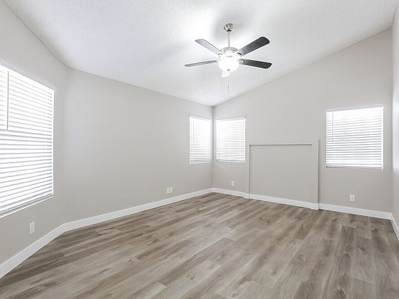 This pet-friendly three-bedroom, two-bathroom Las Vegas rental home features vinyl flooring throughout. Your pet will love to romp and play in the fenced-in backyard. Multiple windows in the living room allow plenty of natural light in to create a bright ambiance. The modern kitchen features stainless steel appliances. Enjoy casual meals in the breakfast nook and larger gatherings in the dining room. The main bedroom includes a walk-in closet and an attached bathroom with a bathtub, a walk-in shower, and dual vanity sinks. The laundry room is conveniently located near all three bedrooms. Schedule a tour today to learn more about this rental home's features.
