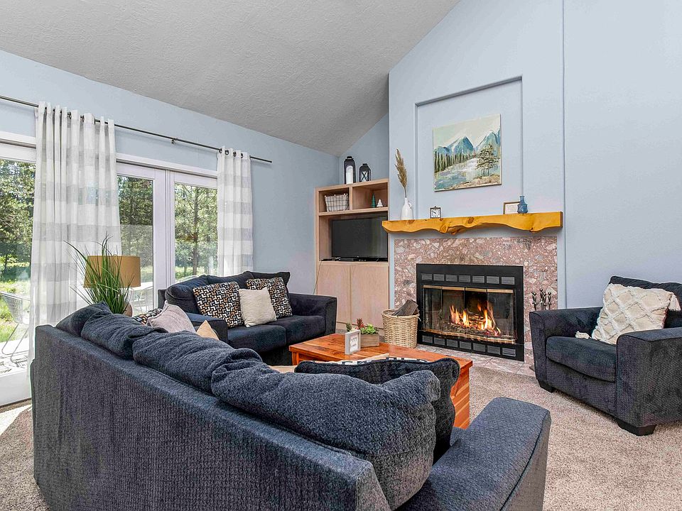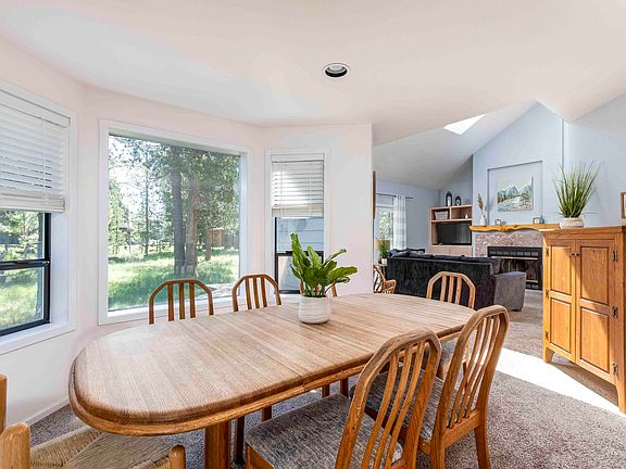 Located close to the Woodlands Golf Course, Tennis courts and the Owners north-end pool, this 4 bedroom home has the perfect floor plan. Living room has wood burning fireplace for that special ambiance. Kitchen offers panty and plenty of space for meal prep. Large dining area. Primary bedroom on the ground level with another upstairs with vaulted ceilings. Opposite a small loft area are two more bedrooms and a full bath to complete the upstairs. Many skylights make the home light and bright. Two car garage. Nice deck space for Summer living. Exterior painted in 2022. Roof replaced in 2014, furnace replaced in 2015. This home is ready for your personal touches. Start your Sunriver home ownership now.