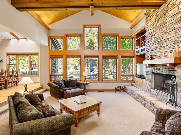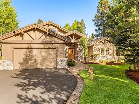 Beautiful lodge style home on the Woodlands golf course! High end wood accents throughout give this home a warm, Sunriver feel. Main level living w/ primary suite on the main level. Spacious open floor plan includes vaulted wood ceilings and floor to ceiling rock/wood fireplace in the great room. Gourmet kitchen w/ granite counters, chiseled granite sink, high end appliances, gas cooktop and wet bar w/ beverage and large wine refrigerator. Beautifully landscaped outdoor space w/ hot tub, built in BBQ and paver patio overlooking the golf course. Additional features include steam shower, humidifier, heated garage and much more. This home is quality throughout. Sold furnished and ready for you to enjoy. Start making memories in this Sunriver home!