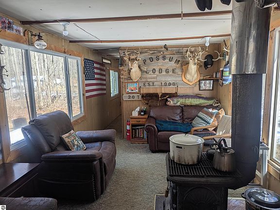 Welcome to Possum Lodge! This is your opportunity to own your very own piece of private woods backing right up to the Hoist Lake Area of the Huron-Manistee National Forest. 2.5 acres of beautiful, wooded hills; mobile home that has been well maintained and outfitted for off-the-grid living and; 335 feet bordering Hoist Lake Federal Land. What more could you want for your Northern Michigan getaway? This property is currently being used as a camp and is ready for you to unroll your bedroll and spend the night. Property comes with solar/battery system, propane powered fridge, range, and lighting as well as a wood stove to keep you warm on those cold nights.