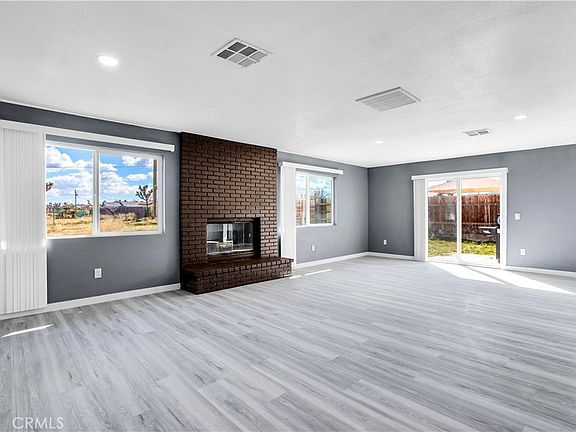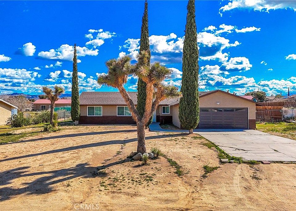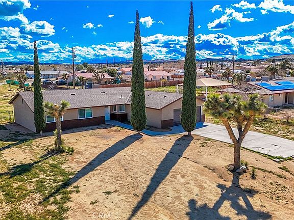 Welcome to this freshly renovated home in the Mesa of Yucca Valley boasting 3 bedrooms, 2 baths, and 1,596 sqft of living space, nestled on nearly half an acre in the heart of Yucca Valley. This home was completely renovated from exterior to the interior. New roof installed in 2024, new kitchen, new bathrooms, bedrooms, flooring, plumbing valves, water heater, recessed lighting, and brand new HVAC system. Upon entry, you're greeted by the inviting living room with a cozy stone fireplace and a large windows facing the backyard are perfect for privacy and allow the living room to feel spacious and airy. The seamless flow of the open concept extends to the dining area which opens up to the kitchen. Kitchen and dining area provide ample space to allow a family to cook dinners, help kids with homework and be present through those mornings with your family. Convenience meets functionality with the adjacent garage which hosts the laundry space. The garage has been completely remodeled with new drywall, flooring, new water heater and plumbing valves. The expansive backyard hosts ample space for kids to play or a peaceful backyard retreat with the neighbors at distance. This home embodies peaceful family living to nurture your family's lifestyle. Conveniently located near shopping, restaurants, and other amenities, this property presents an exceptional opportunity not to be missed. Make this home yours today!