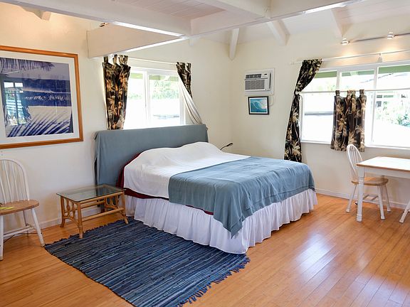 Aloha this open, airy studio is located on a quiet dead-end street on Maika Place, near world-class surf at V-Land. This well-kept space is ideal for up to two people due to its size and the property's septic capacity.The studio includes a kitchen, toilet, and a (soon-to-be enclosed) outdoor shower, along with one on-site parking space.