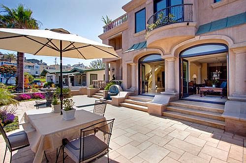 Custom Mediterranean detached town home, located on a desirable flat walk street and just steps away from the beach. A grand 2-story entry with wrought iron railing spiral staircase welcomes you upon entering this master piece. With high ceilings and an open floor plan including 4 bedrooms, 4.5 baths plus 3,400 sq ft (per seller), this ocean view home is a rare find. The gourmet kitchen has Blue Bahia counter tops, custom cabinetry, a walk-in pantry and top-of the line steel appliances. Other interior features include natural stone throughout, custom mosaic, travertine and walnut floors. The entire house has surround sound and exterior video security and a top-of-the-line theater room complete with terraced seating. Enjoy the fresh air on your ocean view decks, either out on the decks, or on the extra wide and deep 45' x 24' elevated front year/patio with wonderful dual fountains. Experience the benefits of walk street living now on one of Hermosa Beach's most desired walk street communities.