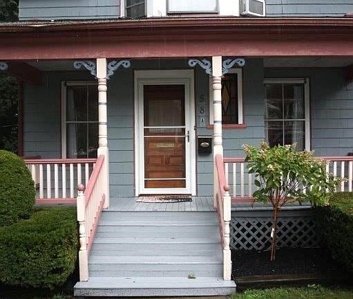 This antique colonial has the charm & special features you expect to see & love about a vintage home: Beautiful wood doors*Natural woodwork & trim* Wood floors*High ceilings*Custom built-ins*Multiple stained glass windows*Decorative chair rail & Farmer's porch! Quaint frt vestibule leads to the main living area of LR, Office & DR. Kitchen was largely updated 2019-2020 w/granite, sink, faucet, backsplash & most appliances. Adjacent is 6x6 pantry & a 1st fl laundry w/access to deck/driveway. Cath ceiling FR features carpet, lots of windows & exterior access to deck. MBR has wood floor, 11x7 walk-in closet & bay window. 2nd BR w/carpet, huge walk-in & adjacent bonus room w/pull-down attic access. Beautiful full BA was updated 2021 w/new tub/surround & much more! ALSO FEATURES: New Carpets*Walkout LL*Circuit Breaker Electric*14 Yr Old Roof*Public Water/Sewer*Wrap-Around Deck*Pellet Stove AND Loads of Updates since 2019. Close to Shops & Routes COME SEE!