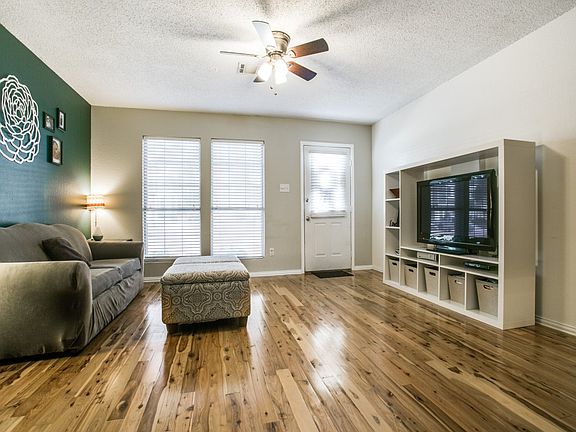 This renovated, beautiful town home is ready for you! Centrally located to shopping, bike trails, park DFW airport, this stunning home boasts stunning cypress wood floors, soft close kitchen drawers, floor to ceiling gorgeous stone fireplace, huge bedrooms, and convection oven! Enjoy the community pool in the summer time walk the shaded walk paths in the evenings. The stainless steel refrigerator stays with the property! All you need to do is unpack. This move in ready town home has it all.